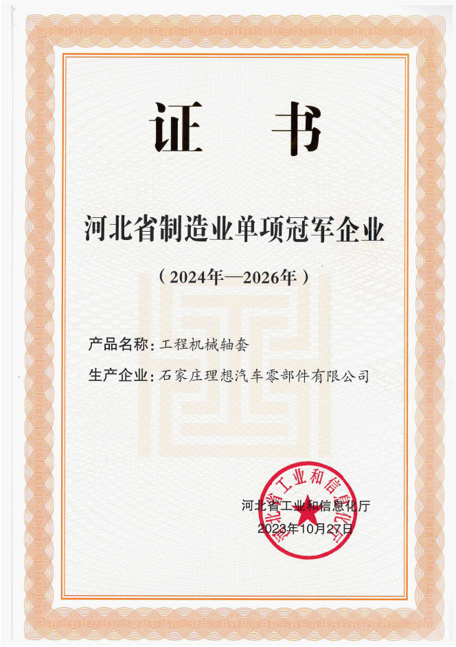 Shijiazhuang Ideal Automotive Parts Co., Ltd. was established in July 2006 with a registered capital of 25 million yuan. It is located in Jiumen Industrial Park, Gaocheng District, Shijia City, covering an area of over 110 acres. It is the only company in China that specializes in the research and development, production, and sales of shaft sleeves for construction machinery.